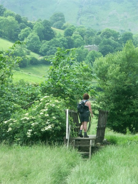 Then the cows got us, or more accurately a herd of young heifers. As we came down from the tarn through a field the herd panicked and bolted first towards us and then the drive-way which was gated. The heifers trashed the gate and were off down the road. Luckily even though they had trampled on each other none of them were seriously hurt and we set off for Burneside and the end of that days section.