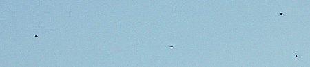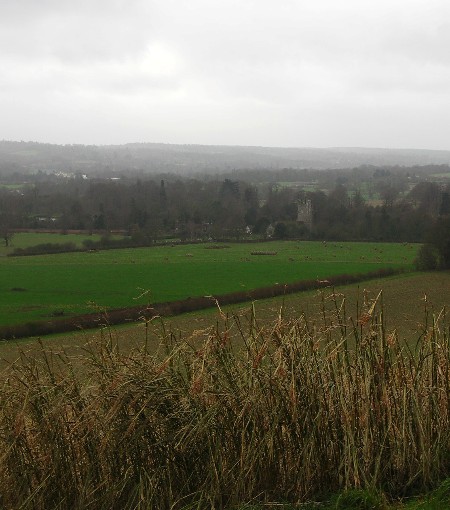 Parts of the North Downs are so scenic that it is so easy to forget that the centre of London is only 20 miles away, such a short distance in some ways but when you are standing in a green field looking towards the towers of Docklands it is like being in a completely different world. After sitting in the sun at Knockholt Pound we left the North Downs Way heading north on Kev's Kentish Cobble and a few hours later after some minor mishaps such as getting lost, stumbling over a top secret MOD base and finding one of the muddiest paths ever, we arrived back in Cudham determined to investigate more paths in the area and fine tune the walk so that we have a choice of long and short alternatives for the future. And what about the Parakeet Patrol? You have to take our word for it but the spots in the picture are the legendary Parakeets, 4 of them flew past, honest! (At least according to Kev, Lizzie was not so convinced).