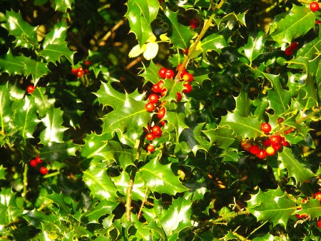 Festive lights have been decorating the streets of many local towns since the middle of November and now as we enter December the market stalls are starting to fill out with lots of local produce ready for the holiday blow out and of course, trees, Christmas is on it's way. The decorated tree is, like many things we now associate with a traditional Christmas - over eating and drinking - a recent tradition in the UK, heavily influenced and popularised by the Victorians. In 1846 a print appeared in the Illustrated London News showing Victoria and Albert, the Posh and Becks of their day, standing in the lounge around a decorated tree and everyone wanted one! Contrary to popular opinion though they were not the first to bring a whole tree indoors, George III and the Georgian monarchs did the same many years earlier but they lacked a decent publicist and could never shake off their German connection thereby making them and anything they did instantly unpopular. The tree itself is a throw back to times when the spirits of spring and summer were believed to be taking shelter in the evergreen branches, to make sure they survived winter people would bring garlands of evergreen inside and it wasn't just chucked out with the rubbish a few weeks later when the needles had fallen off, greenery would remain displayed until early February when it would be taken outside to allow the spirits of nature to return to the land and the dead branches used to bolster supplies of firewood. Recycling medieval style. As 50% of the 10 mile section we monitor is along forest trails and much of the rest passes by the edge or close to woodland we see plenty of ivy and holly and it is surprising how many different varieties there are. We also come across a lot of trees, many with their own individual character and we are starting to recognise where we are along the trail from the shape of a familiar tree. Unfortunately neither of us are knowledgeable enough to recognise all of the species yet so it was useful to find the Nature Detective section of the Woodland Trust website which has plenty of information sheets mainly aimed at youngsters.