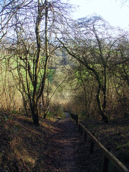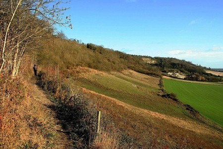 A North Downs Way Diary The year started brightly, glorious blue skies bringing out many walkers keen to shake of the hangover from the previous nights celebrations however we had decided to pop up the M25 to do a bit of shopping in the sales but not before stopping briefly at the Oxted Steps. If you happen to be travelling along the M25 between junctions 5 and 6 look up towards the north, you should be able to make out the line of the North Downs Way on the ridge above. Without knowing it you will have just gone past, or are about to go past the Oxted Railway Tunnel, depending of course on your direction of travel. At this point the North Downs Way temporarily leaves the top of the wooded escarpment to head down a flight of wooden steps in line with the rail tracks that shoot off towards the south. If you walk along the trail it is worth stopping at this point and resting for a while on the terrace erected by the Downlands Trust to take in the view and reflect on some of the local history. Just below you in the valley between the base of the steps and the M25 is, allegedly, the original route of the Pilgrims Way, like the motorway, the old trackway stuck to the low ground wherever possible and would have passed just in front of the railway tunnel. In his attempt to trace and search for the line of this ancient trackway, the Victorian author Hilaire Belloc reached this spot at nightfall in the days before Petzl head torches and was forced to scramble down the embankment and then follow the railway line in the hope of finding lodgings for the night. Nowadays this part of the trackway is no longer a right of way but you don't have to look hard enough to see a tempting line heading East to West below the official footpath. This line is so tempting in fact that, in addition to a few walkers obviously determined to walk the actual route of 'The Pilgrim's Way', we have seen quite a few people, including groups of DOE'rs, scrambling back up the slope and through the brambles to rejoin the NDW, having missed the well marked turn.