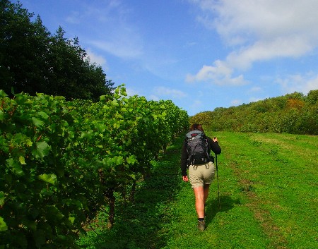 It's funny what you can find just around the corner, after thinking that there wasn't a nice cafe or tea room on the section of the trail that we monitor and we are missing out on the opportunity to get a cup of tea either during or at the end of our walks, we found one, or to be more exact a Vineyard with a tearoom - of sorts! You can actually sneak through the hedge as the North Downs Way passes, walk through the vines and pop into the cafe or if you prefer the road it is only less than half a mile off the route. There is a history of wine making and vineyards in southern England going back 2000 years to Roman times but the one at Godstone Vineyard is fairly recent, established in 1985 on an old hop farm. In addition to the usual tours they offer a novel 'Adopt a Vine' where you can have your own personal vine and then receive a bottle of wine at the end of the year made with 'your' grapes, a unique gift but quite an expensive way of buying a bottle of white wine. Sadly the friendly but slightly slow service means that it is not a place to go if you are in a hurry but well worth popping in for a pot of tea or bottle of local wine.