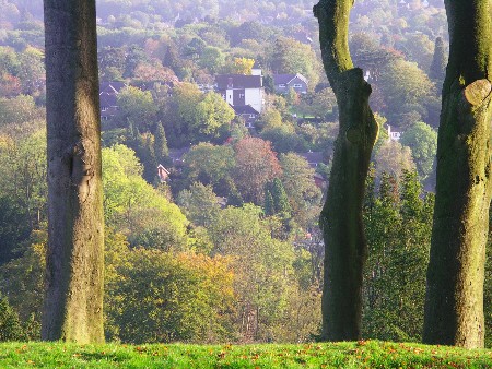 We went in search of a tea room and as you know the little bit of the North Downs Way we are monitoring is sadly bereft of an accessible place to stop so this gave us the excuse to wander west and visit Gatton Park. Earlier in the year when we walked the entire length of the North Downs we had literally rushed through in a blur, it was raining and we had a train to catch a few miles away in Merstham. This time, on the final day of British Summer Time, we just sat and took in the final rays of sun, slightly mesmerised and enjoying the views ... over Reigate! OK, it may not be wild countryside, but as we sat supping our tea with the sun slowly ebbing away a rich warm feeling came over us, no Kev hadn't spilt the tea! What a great summer it had been, for the most part the sun was our constant companion, let's hope we are not seeing the last of it just yet! A few miles along the track we had passed a modern sculpture symbolising stone circles laid out by prehistoric tribes, now we sat watching, like our ancestors, the final rays of light and warmth sinking in the distance hoping for it's speedy return. There was even a van in the car park playing some odd hippy version of Bob Dylan songs, I guess that it may have been their own versions and at this point it would have been nice to have added that they were accompanied by nymphs or fair maidens dancing merrily through the trees, this part though wouldn't have been true. So in the interests of accuracy it is better to say that there was only a middle aged, bare chested male hiker who passed by when I was getting Lizzie's cup of tea. He wasn't dancing but looked very happy. Why I never have the camera ready when opportunities present themselves is one of life's little mysteries. | |