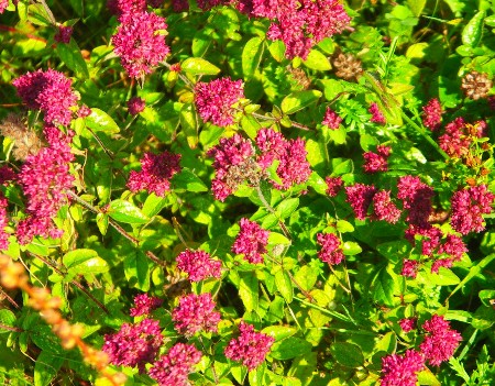 Herbs such as marjoram, thymes and shrubs cover the areas of open downland, bright orange Small Heath butterflies flitter about in the sun searching for the last scraps of pollen.