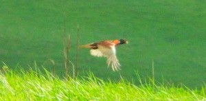 The shooting season is now into it's first full month, and although we haven't encountered any activity around the trail yet the noise of distant gunfire is a sign that it may not be too long before we encounter a shoot - luckily this pheasant was only flying off after being startled by Lizzie passing by and survives for another day.