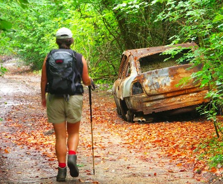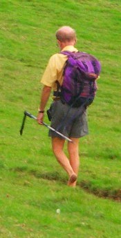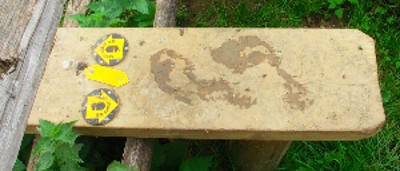 At this time of year we are not meeting many people along the Trail, just a few families having short walks from one of the car parks along the trail, dog walkers and the occasional group of school children doing their Duke of Edinburgh Award, we are likely to come across many in the following months so we will now refer to them as DOE'rs. All relatively normal characters but there was something very unusual about this guy walking past. He definitely left his personal muddy footprint on the stile!