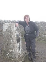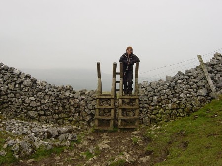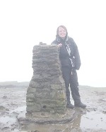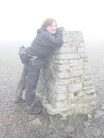Once we found it, Lizzie hugged on to the trig point. We were approached by two young girls on top of the hill, they been out walking with a group, managed to get lost and left stranded with no idea where their friends were or where they wanted to go. We tried to direct them back onto the path they had walked up whilst we headed off to find our route down. The mist made the path back difficult to find but we joined up with a group of ladies and with the help of a compass and the GPS found the right path and started to head on down for what we thought were the last few easy miles into Horton. The two lost girls suddenly appeared out of the mist walking towards us, they had got lost again this time we suggested that they kept to the track we were taking and follow us down to safety.